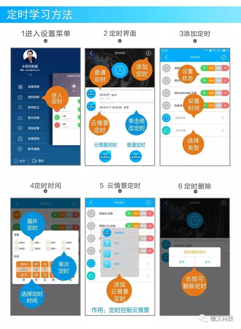 用GPRS流量 手机APP实时控制,每个设备支持多达24组定时,同时支持云情景高达256组。同一帐号可绑设备多达256个,可应用于集成管理。每个设备可以单独命名。方便管理。可实时进行温湿度采集,自动控制温湿度,可以控制水泵、渔排增氧机、卷联机、服务器、自动洒水、家用路由、电灯、风扇等用家用、工业、农业,蔬菜棚等用电设备!