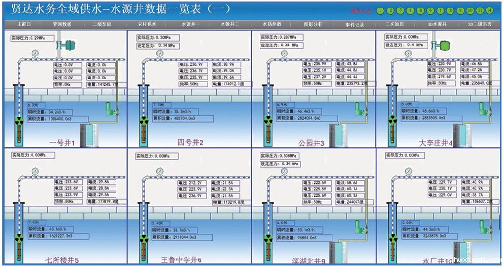 水源井远程监控系统专为解决上述难题而设计,可实现远程监测水源井的运行状态、运行参数和远程控制水泵的启停,在大大提高水源井管理效率的同时又大幅度降低了管理成本。
