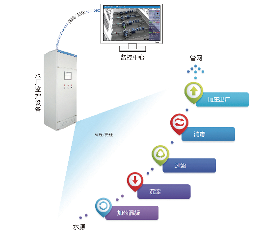 ◆ 在水厂加氯间安装加氯设备远程测控及水质监测终端。