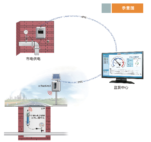 (通过监测中心可设定每个设备的最低压力最高压力超限报警值和数据的发送间隔时间及采集压力的间隔时间。)
